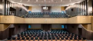 Raja Shivaji Auditorium is a free-seating hall, allowing flexible seating options suitable for various types of conferences, seminars, workshops, and trainings. The auditorium accommodates up to 200 delegates. The auditorium is well-equipped with modern amenities such as carpeted flooring, air-conditioning, projector, variable lighting, stag-lighting, sound system, etc.